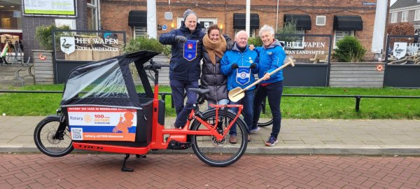 En op 6 februari werd de e-bakfiets met de estafette-schop overhandigd aan de voorzitters van de drie Hoornse Rotaryclubs in het Dijklander Ziekenhuis in Hoorn.