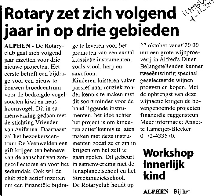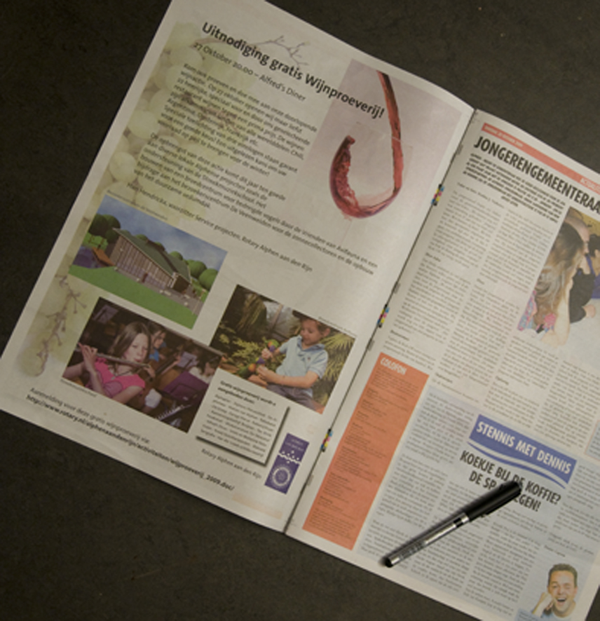 Advertentie Wijnproeverij in "De Alphenaar" 20 oktober 2009