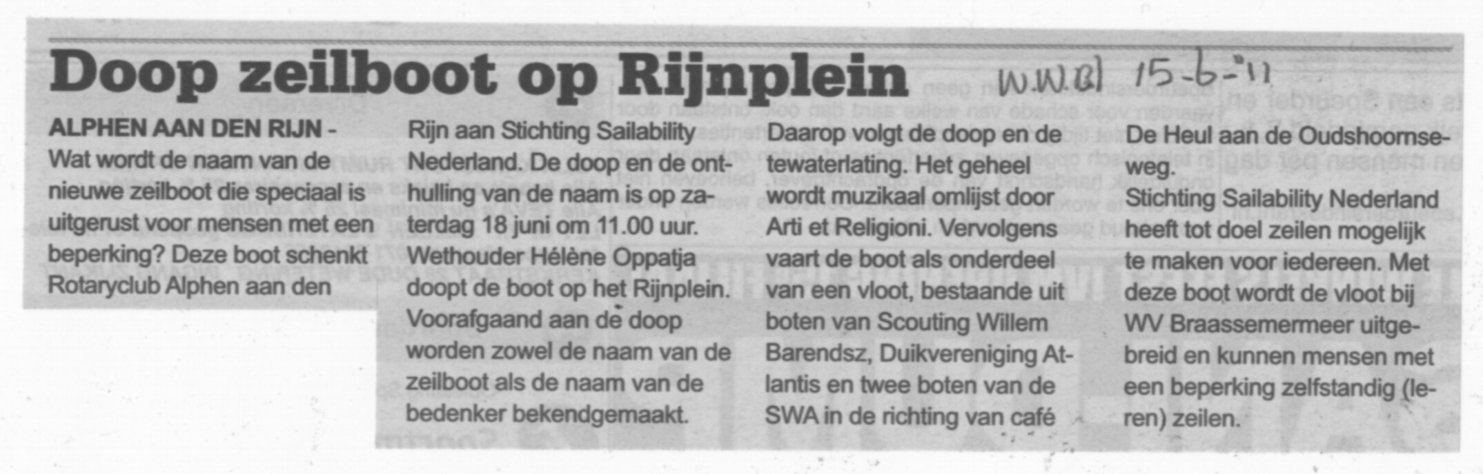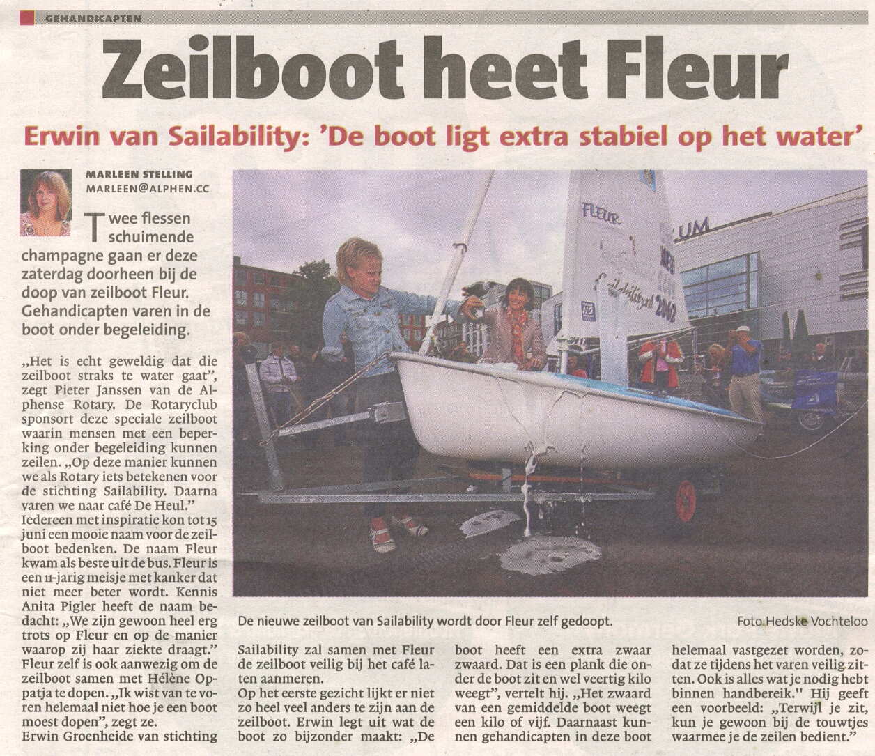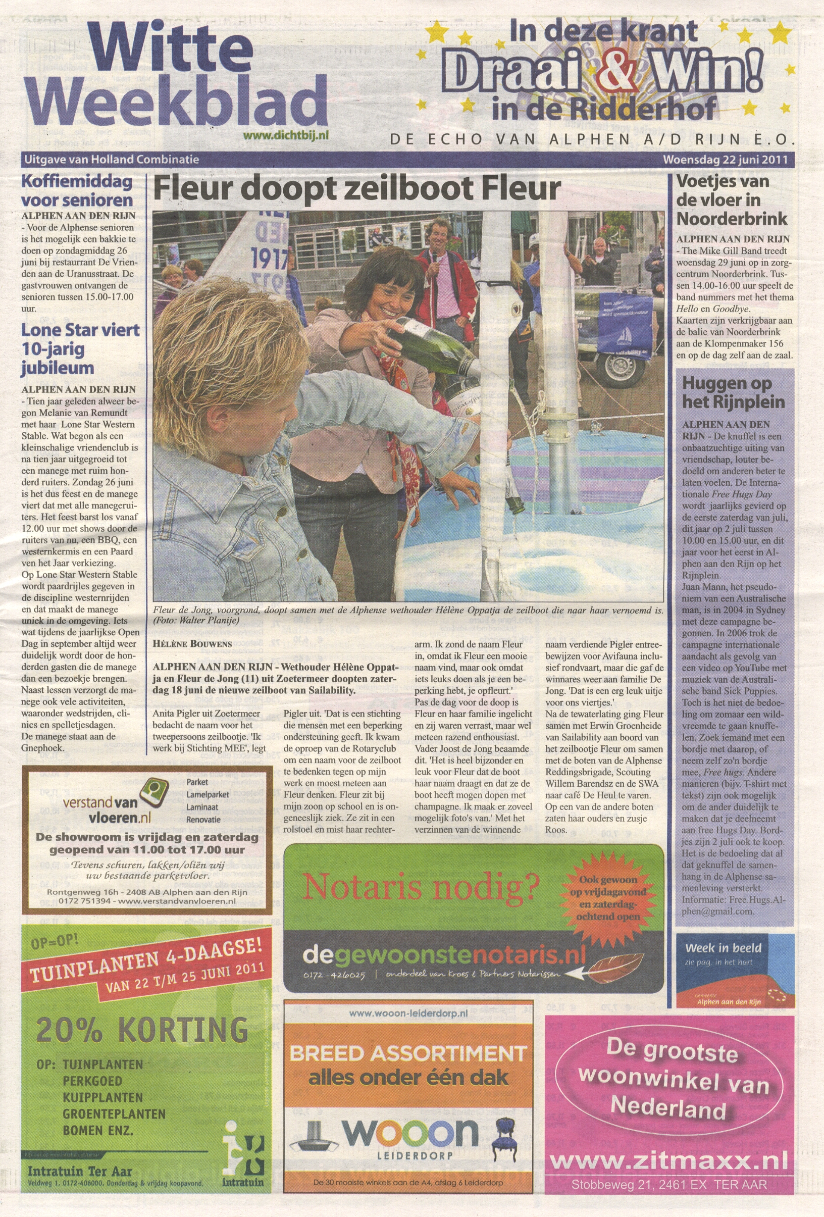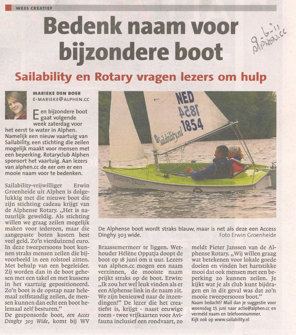 Artikel Alphen.CC 20 juni 2011 "Zeilboot heet Fleur"