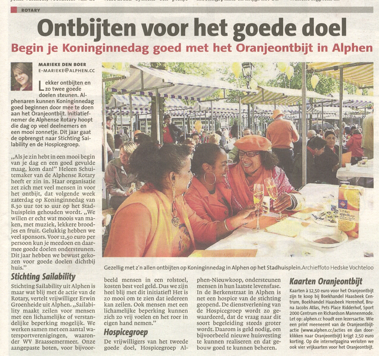 Artikel Alphen.CC 23 april 2011 "ontbijten voor het goede doel"