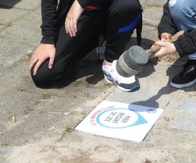 Donderdag 8 juli jl hebben de leerlingen uit groep 7 en 8 van Basisschool De Windroos onder het toeziend oog van medewerkers van Openbare Werken een ‘Hier begint de zee’ tegel in het parkje bij de Swaenswijkbrug gelegd.