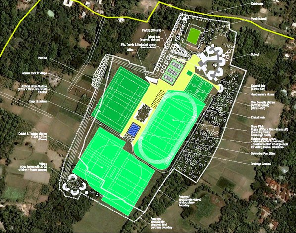 There is still a way to go: the legal processes of “mutating” the land and then obtaining planning permission will take time. Initially we are concentrating on the ten acres found at the top of the original site where we intend to build the School, one playing field and ‘The James Harding Pavilion’, a simple construction on the side of the sports field to provide shade and basic wash facilities. These structures have been designed pro bono by BDP, our British architects, as modules which start small but can be extended as we get more land, raise the required funds and as the number of children grows. We have already started to build the wall round the top part of the project to stake our claim to the land, and to prove to the local people that our project is moving ahead and is really aimed at underprivileged children. The Rajarhat project, like Rome, will not be built in a day, but whilst we have enjoyed the thrill of growing fruit and vegetables, organising picnics, playing cricket, rugby and football on our own (so far) unspoilt little piece of West Bengal, the city has been inching towards us. On the day the new Future Hope School and Sports Foundation opens it will be in a suburb of Kolkata, served by the metro, buses and highways.