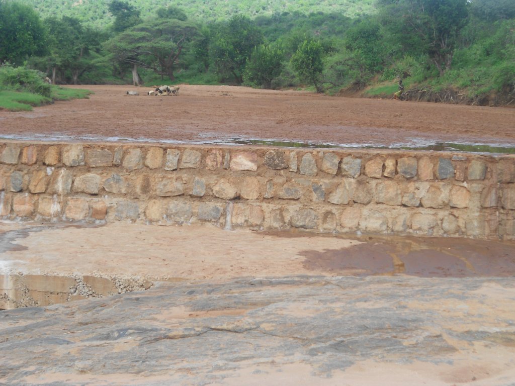 Beelden van de bouw van de zanddam in Konzo
