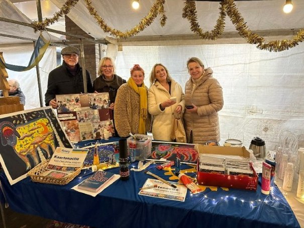 In Holten was Marina zelf aanwezig om kaarten te verkopen. Overigens kwamen mensen niet alleen naar de kraam om kaarten te kopen. Er was veel interesse voor deze goedlopende activiteit voor de Oekraïense kinderen en ook wilden mensen horen hoe Marina haar leven in Nederland heeft opgepakt.