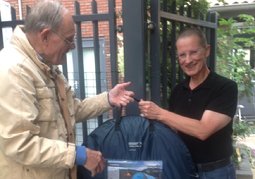 De ShelterBox actie was gekoppeld aan een loterij die gewonnen werd door de familie IJzendoorn uit Houten. Rotary lid Kees Visser overhandigde hen vorige week de hoofdprijs: een twee persoons pop-up tent. (Foto Aswin Menke)