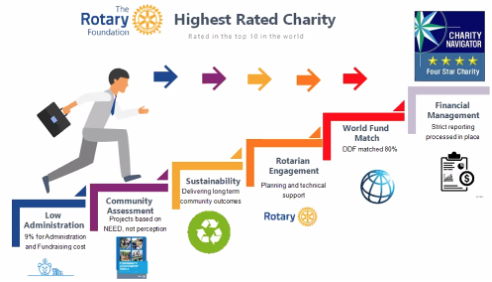 In het huidige Rotaryjaar (tot juni) bouwen we stap voor stap aan beter begrip en betrokkenheid bij TRF: