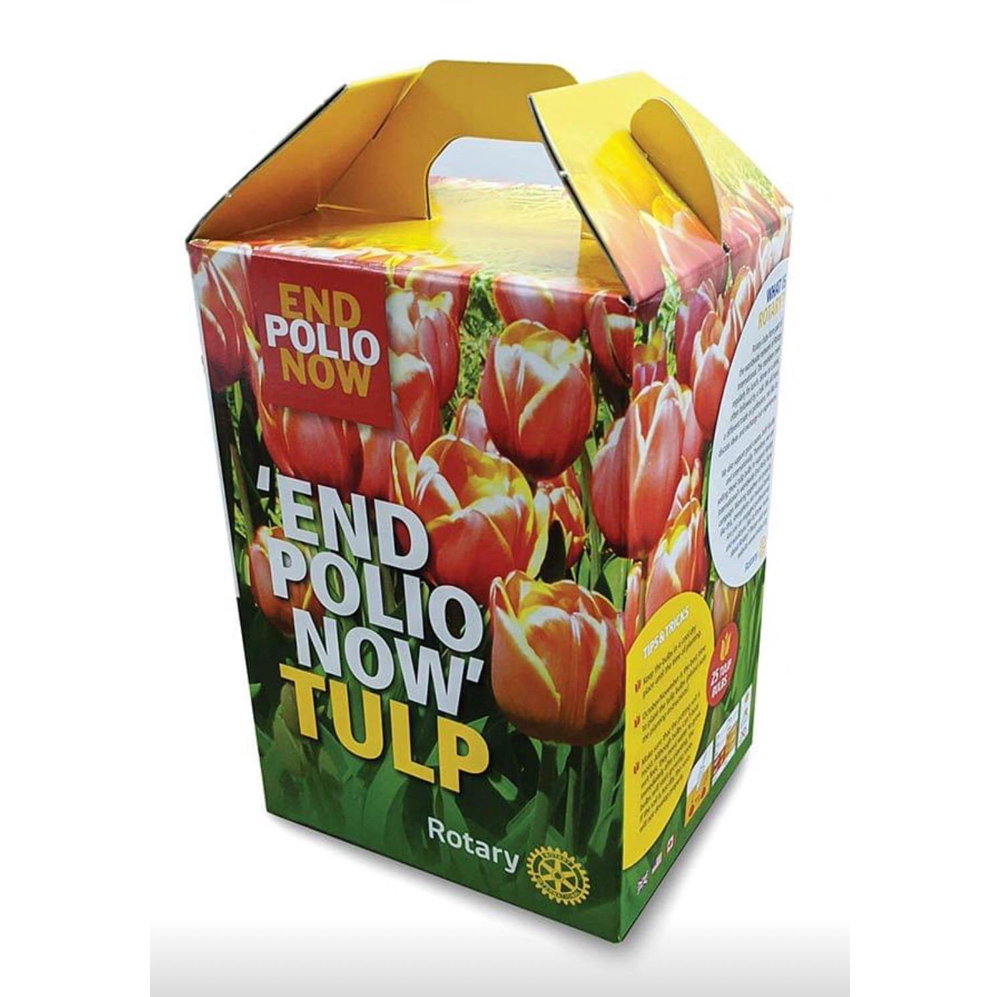 Wie denkt dat alleen Rotarians een verschil kunnen maken, heeft het mis. Iedereen kan bijdragen. Bijvoorbeeld door mee te doen met de bekende tulpenbollenactie van End Polio Now. Clubs en individuen planten deze karakteristieke tulpen elk jaar opnieuw in tuinen, op pleinen en rotondes. Een zichtbaar teken van hoop én een tastbare donatie.