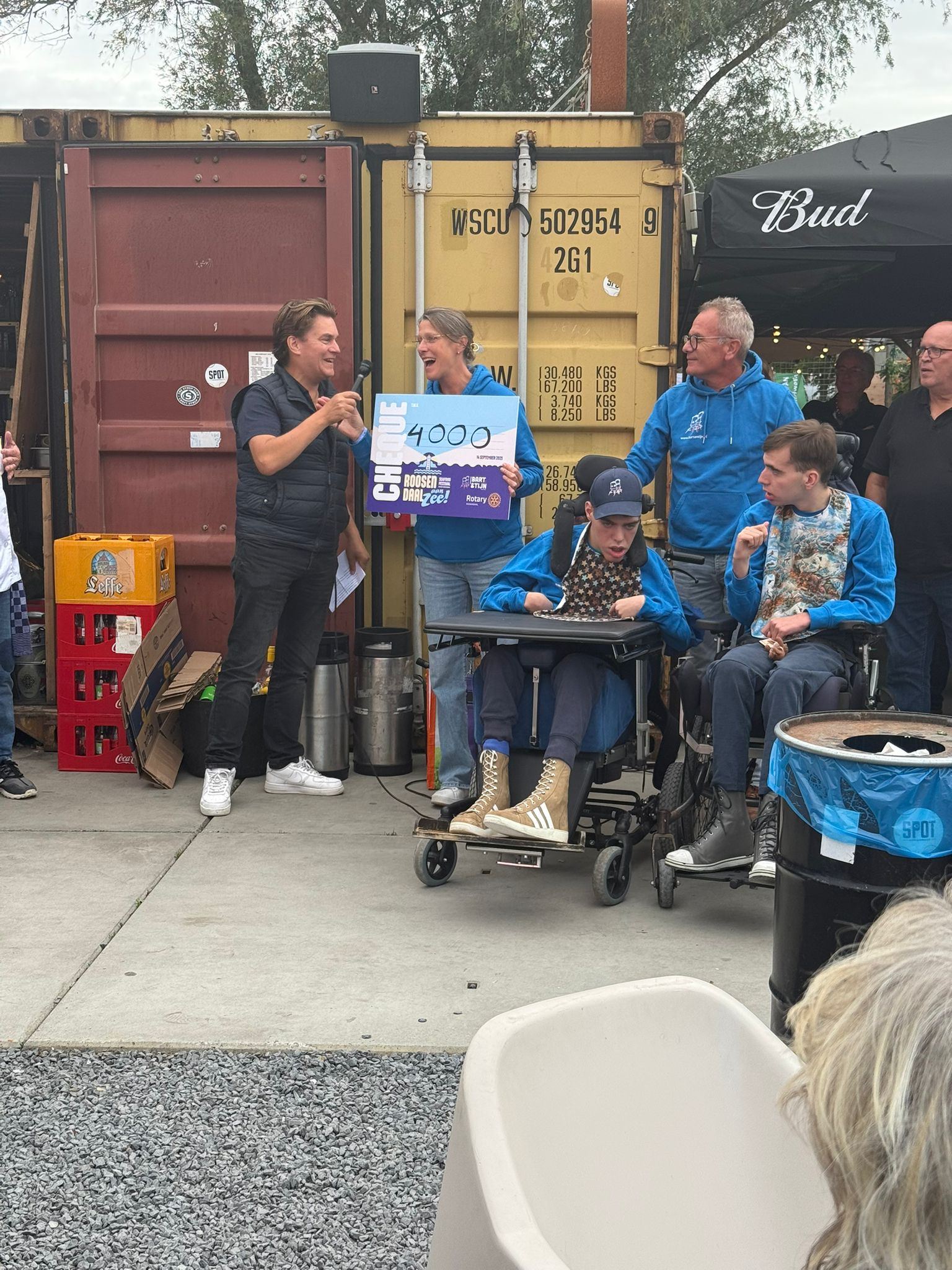 Tijdens het slotmoment nam Judith, de moeder van Bart en Tijn, de cheque in ontvangst. Ze reageerde zichtbaar ontroerd: “We hadden echt niet verwacht dat het zo’n groot bedrag zou zijn. Dit is een enorme steun voor ons. Het geld zal worden ingezet voor onderzoek naar de stofwisselingsziekte van Bart en Tijn. We zijn Rotary Roosendaal en alle bezoekers die dit mogelijk hebben gemaakt, ontzettend dankbaar.”