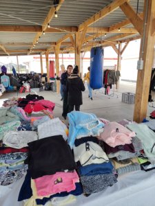 Bewoners kregen zaterdagmiddag alle tijd om onder meer broeken, jassen, sportkleding en jurken uit te kiezen. De kleding was ingezameld door onze leden. ''Voorafgaand aan de kledingbeurs hebben we mooie gesprekken gevoerd met de coördinatoren van het azc waarin de wensen van de bewoners naar voren kwamen'', aldus Annelies de Jong.