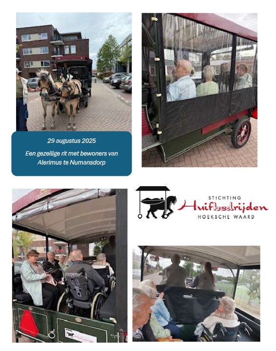 Op 29 augustus hadden bewoners van Alerimus te Numansdorp een gezellige rit met een huifkar.