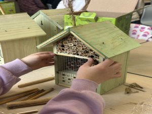 Op 24 maart 2026 was het zover op basisschool De Aventurijn in Houten. In samenwerking met Rotary Club Houten Castellum gingen de leerlingen aan de slag met het maken van hun eigen insectenhotel. En dat deden ze met zichtbaar plezier.
