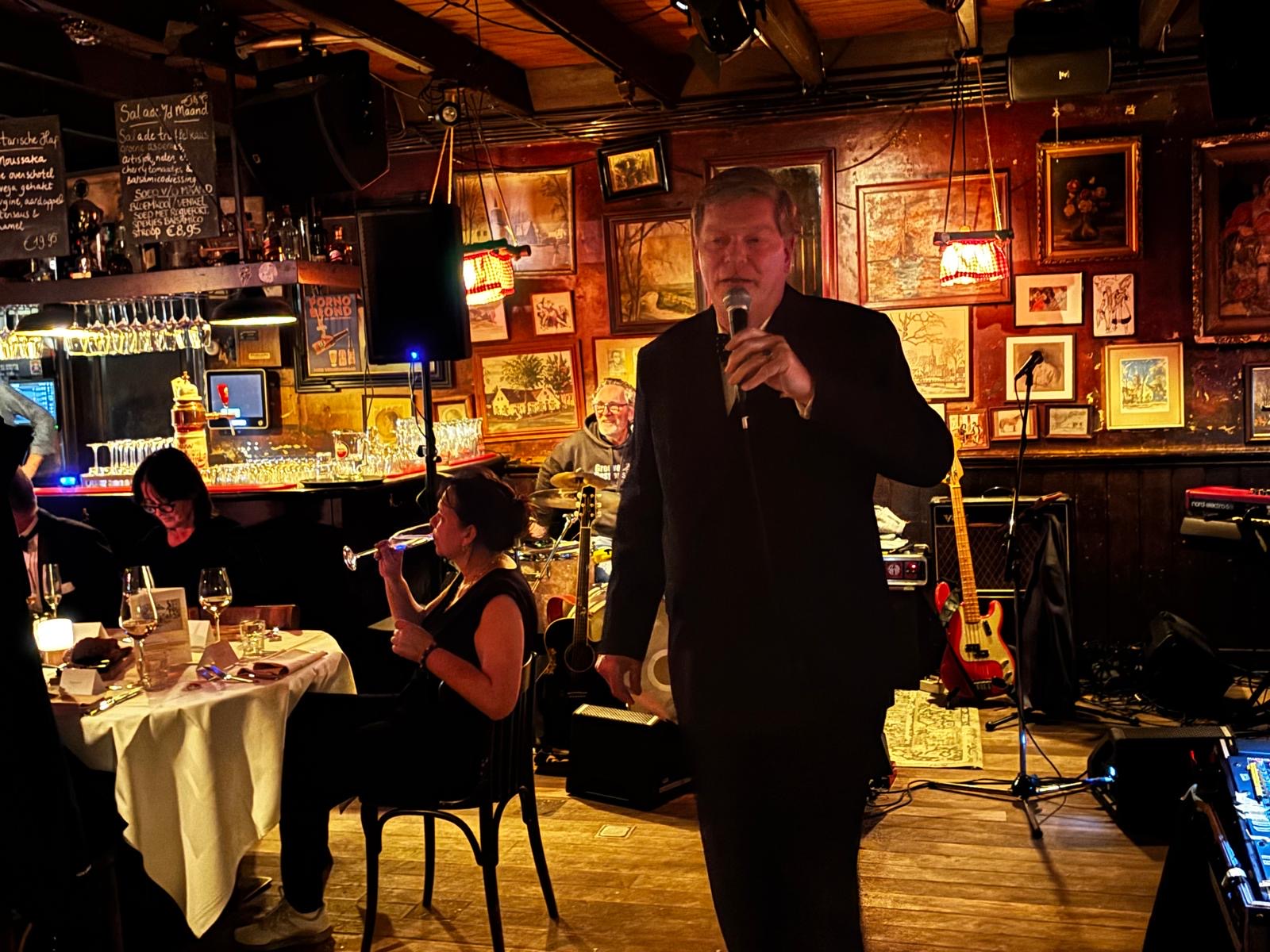 Jongerenburgemeester Oliver Wagstaff uit Laren stelt zich voor op een clubavond