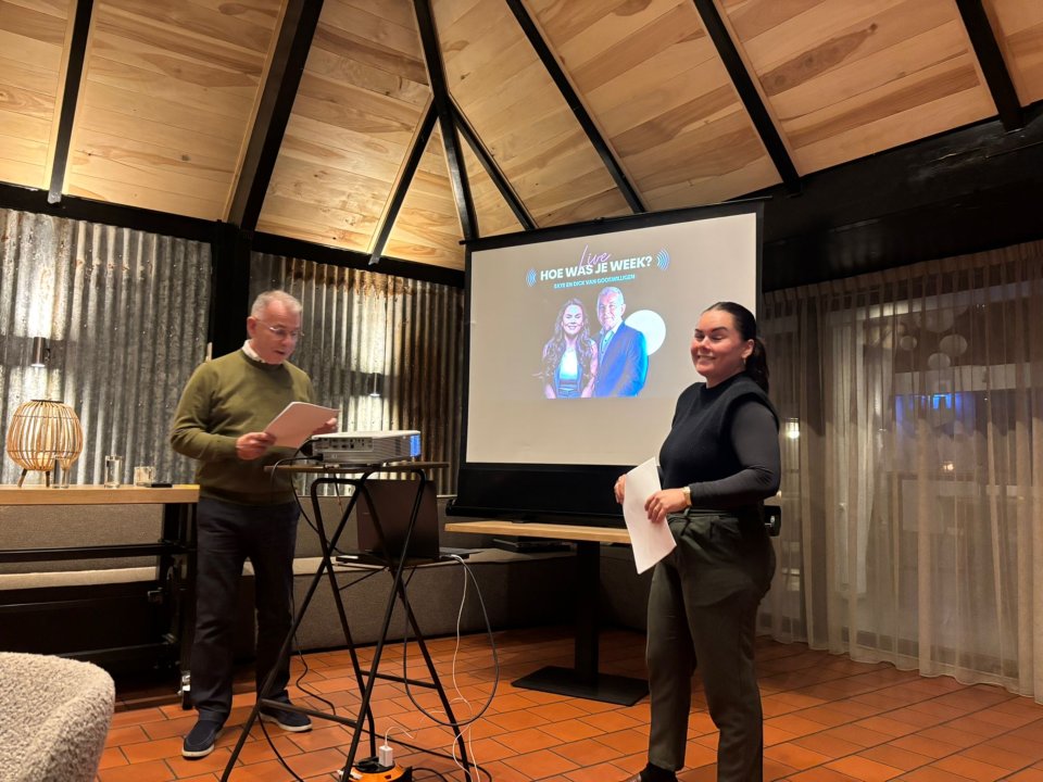 Deze woensdag een bijzondere avond met Skye en Dick van Gooswilligen, makers van de podcast Hoe was je week. In theatershow-stijl namen zij de aanwezigen mee langs actuele onderwerpen: van noodpakketten en politieke campagnes tot sportincidenten en persvrijheid. Humor en scherpe observaties wisselden elkaar af.