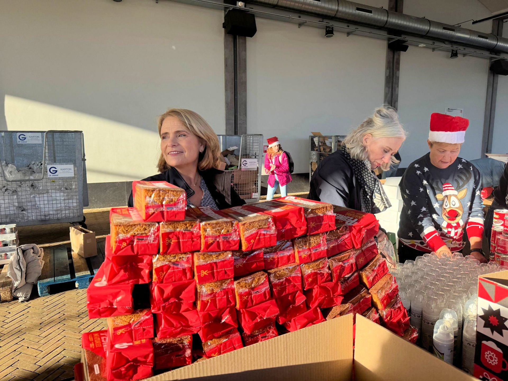 “Veel bedrijven en particulieren hebben meegeholpen aan deze jaarlijkse actie. Ze konden via een website een heel pakket doneren of een los product, zoals tomatensoep, thee of een lekkere tulband. Zo bereikten wij ons doel van 500 pakketten waarvan de inhoud door de Sligro werd samengesteld”.