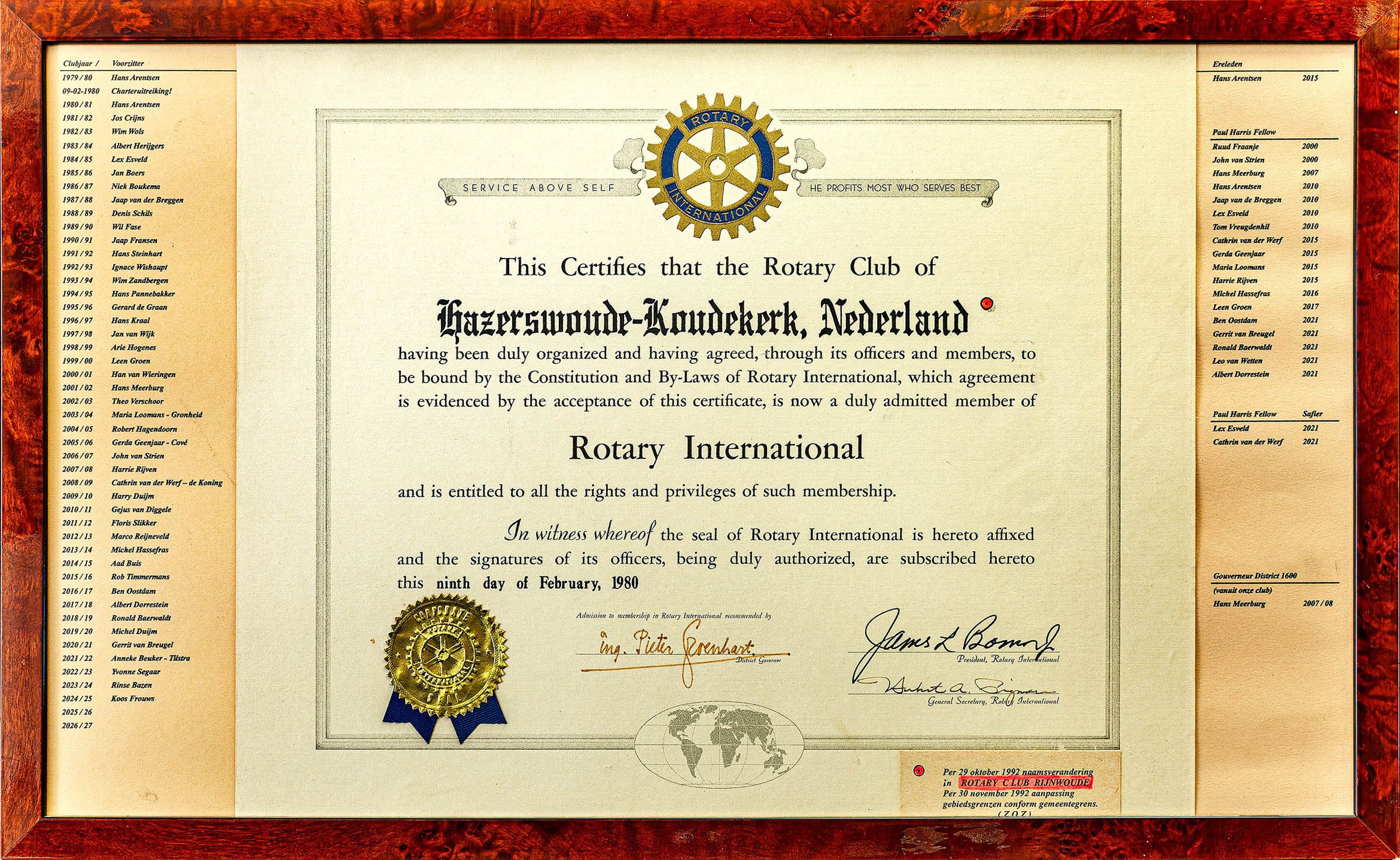 Charter met lijst voorzitters