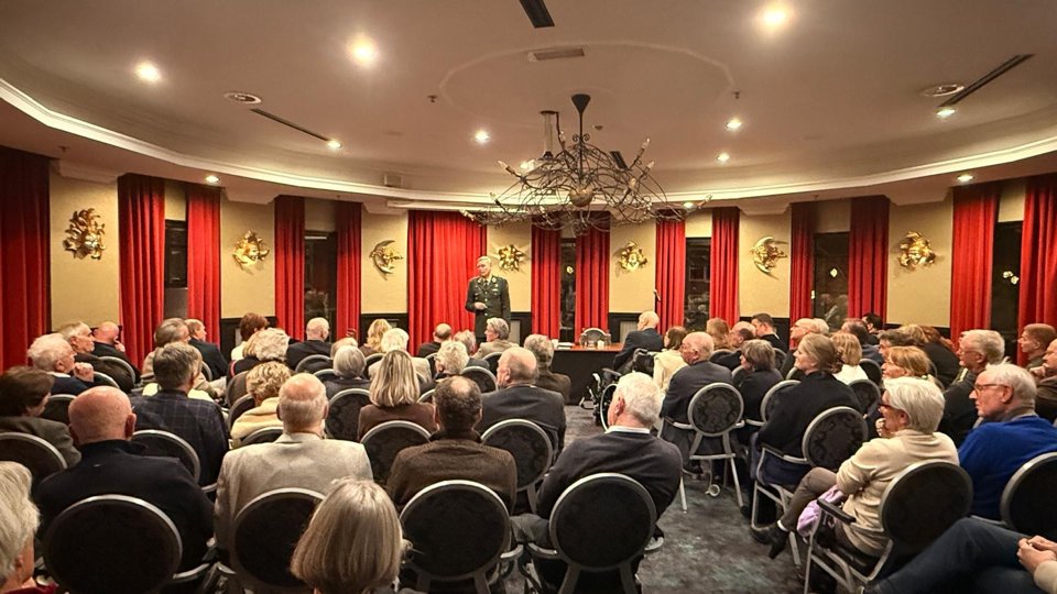 Zo'n zeventig bezoekers luisterden in de Oranjerie aandachtig naar de grote uitdagingen voor de krijgsmacht door de veranderde geopolitieke omstandigheden. Zo is er lange tijd bezuinigd op defensie en kampt de krijgsmacht met capaciteittekort in mensen en middelen. Met man en macht wordt er nu gewerkt om de krijgsmacht zodanig toe te rusten voor haar taken, dat zij succesvol in Navo-verband ingezet kan worden. Veiligheid betekent echter niet alleen dat materieel en personeel bij defensie op orde moet zijn, volgens luitenant-generaal J.W. Maas. De weerbaarheid van de bevolking is ook essentieel.