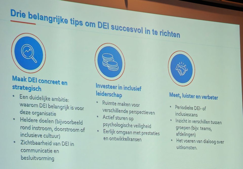De welbespraakte Henriette van Bommel gaf een interessante presentatie over diversiteit en inclusie op uitnodiging van Guus. Onderwerpen die bij de club al een grote verscheidenheid aan reacties opriep. Henriette is op dit onderwerp gepromoveerd. Ze gaf een aantal take home messages mee.