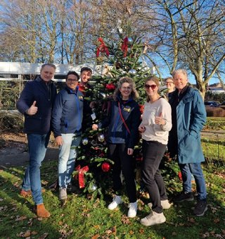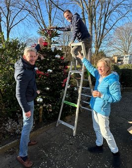 13 december 2025 – Traditiegetrouw werden ook dit jaar weer alle buiten kerstbomen bij de huizen van Amarosa door ons versierd. Altijd een gezellig doe-project, dit jaar stonden we in een heerlijk winters zonnetje. Na het verspreiden van onze kerstkaarten was het tijd voor de andere traditie, de ochtend afsluiten met een smakelijk broodje kroket wat ons werd aangeboden door Amarosa.