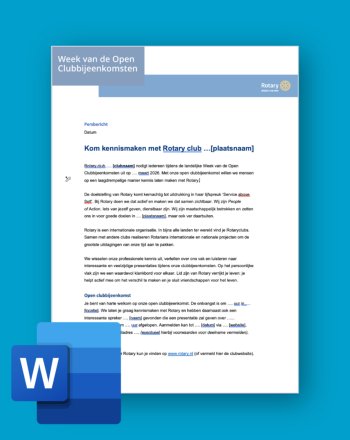 Deze actieweek brengen we landelijk onder de aandacht via persberichten, social media posts en campagnes. Door alle open clubbijeenkomsten in dezelfde periode te plannen, genereren we meer zichtbaarheid. Dit leidt tot meer belangstelling, imagoverbetering, een groter aantal mensen dat kan kennismaken met Rotary en nieuwe leden.