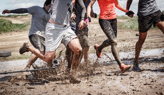 Door de modder in een echte obstacle run